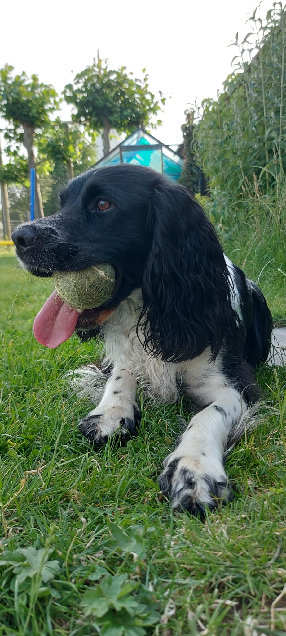 | Balto. Ik ben een Engelse springer spaniel van 3 jaar. Het liefst ren ik heel de dag buiten, behalve als het regent dan verstop mij altijd in mijn mand. Ik ben helemaal gek van tennisballen en daarom ben ik begonnen in juni 2023 met flyball. Ik ben nog een beginner, maar omdat ik het zo leuk vind pak ik het snel op. |