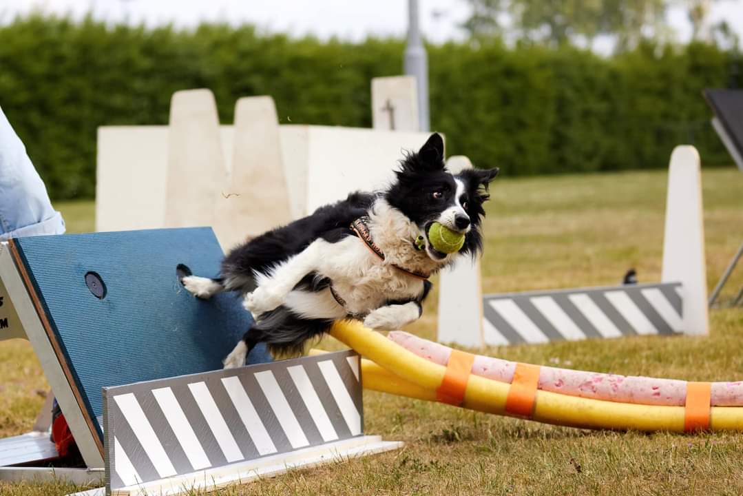 | Finlay Hallo iedereen, ik ben Finlay een bordercollie van 3 jaar oud. Ik ben het spelletje Flyball nog aan het leren maar met mn ervaren vrouwtje aan mn zijde zal dat vast wel goedkomen 😊 Want man o man wat is dit toch een leuk spel! Ik kan er niks aan doen maar ik moet iedere keer zo uit mijn plaat gaan dat ik na 10 minuten al bekaf ben, al die anderen die eerst mogen is zooooo niet eerlijk! Mijn vrouwtje moet dan erg lachen als ik dan uitgeput in de baan ga liggen of als ik dan als een vaatdoek naar de bal toe ren. Maar als ze mij dan roept om terug te komen, dan ineens kan ik weer heel snel zijn hehe. Ik heb ook de bijnaam little tank gekregen, ze zeggen dat ik behoorlijk sterk ben en erg hard aan de lijn kan trekken maar dat is enkel bij de flyball want thuis als we ons rondje lopen, weet ik heeeeel goed dat trekken aan de lijn niet mag. Naast achter balletjes aanrennen vind ik eigenlijk alles leuk om te doen. Trucjes, speuren, gehoorzaamheid oefeningen, apporteren, spelen… het maakt allemaal niet uit, ik doe het allemaal! Hopelijk mag ik in 2025 ook eens mee met een wedstrijd om te oefenen, want het doel is uiteindelijk wedstrijden te lopen. Dan moeten de andere hondjes helaas mijn vrouwtje gaan missen als ballenlader, maar daar zal vast wel iemand anders voor worden geregeld 😉 |