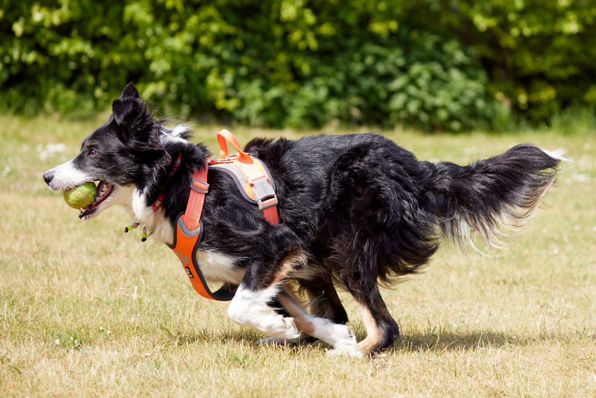 | Jack. Jack is momenteel een 7 jarige Border Collie reu en begonnen met flyball training toen hij 2 jaar was. Het begin was moeilijk, langs de hordes gaan vondt hij in het begin leuker, maar na een winterstop viel zijn kwartje en wist hij dat er over de hordes gesprongern moest worden. Alleen heeft hij af en toe nog de neiging om de ballen niet los te laten, maar liever vast te houden. In 2021 begon hij wedstrijden te lopen als starthond, nu is het afwisselend starthond of als 2de hond. Afgeleid met rennen over de baan wordt hij niet zo snel. Zijn dag is perfect zolang hij maar met ballen kan spelen, groot of klein en als hij daarbij nog kan knuffelen is het helemaal goed, alleen kan dat er nogal hardhandig aan toe gaan. Tevens is hij de broer van Kaily, ze komen uit hetzelfde nestje. |